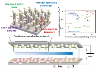 This research proposed a sacrificial template array engineering combined with controlled phosphating strategy to fabricate monolithic low-tortuous Cu3P nanorod arrays (mCu3P NA) with impressive high-areal-performance electrochemical Cl− removal. As expected, the low tortuosity of Cu3P nanoarrays endows rapid ion diffusion and facile one-dimensional electron transport, facilitating accelerated Cl− removal kinetics. Besides, the abundant accessible active sites and sufficient buffer space resulted from low-tortuous structure were conducive to enhancing the deionization capability and improving stability. Consequently, the mCu3P NA electrode exhibited superior areal capacity (2.21 mg-Cl− cm−2) and corresponding the fabulous rate (0.074 mg-Cl− cm−2 min−1) with excellent cycle stability in electrochemical chloride ion removal. This work paves the way for the application of low-tortuous Cu3P arrays for environmental treatment and promotes the development of high-performance Cl− removal electrodes. Professor Jie Ma is the sole corresponding author of the paper. Doctoral student Ziqing Zhou is the first author. The research received funding support from the National Natural Science Foundation of China (NSFC) and the Shanghai Municipal Science and Technology Commission's Domestic Science and Technology Cooperation Program.