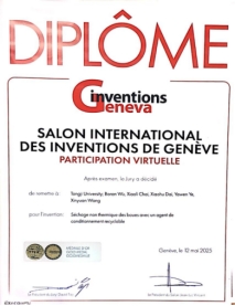 The exhibition project titled "Non-thermal Drying of Sludge with Recyclable Conditioning Agent," spearheaded by Assoc. Prof. Boran Wu from CESE, secured the Gold Award at the 50th Geneva International Exhibition of Inventions. This project introduces a novel concept to enhance sludge dewatering performance through in-situ water crystallization enhancement. By utilizing the chemical driving force of hydrate crystallization reactions, it facilitates the directional migration of water within the sludge from solid interstices to homogeneous crystals. Without altering the chemical compositions of the water and solid phases, this approach transforms the water-solid wetting distribution state into a water-solid phase-separated aggregation state, significantly improving the water-solid separation performance of the sludge. After treatment, the moisture content of the sludge is reduced to below 40 wt.% through plate-and-frame filtration. Moreover, it enables the recycling of gaseous conditioning agents, leaves no chemical residue in the dewatered sludge cake, and consumes only one-sixth of the energy required by traditional thermal drying technologies. Relevant achievements have resulted in the application and granting of six patents, including one U.S. invention patent, and the publication of multiple academic papers in journals such as Water Research.