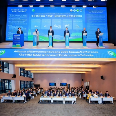 From November 7 to 10, 2025, the 2025 Annual Conference of the "Belt and Road" Environmental School Dean Alliance and the Fifth Environmental School Dean Forum, co-organized by CESE, were successfully held. Under the theme "Converging Wisdom, Green Action for the Future," the event brought together over 50 environmental school deans, renowned scholars, and industry experts from 16 countries and 9 domestic universities. The conference achieved significant outcomes in advancing international cooperation in environmental education, strengthening talent cultivation, and promoting research exchange in the fields of carbon peaking and carbon neutrality.