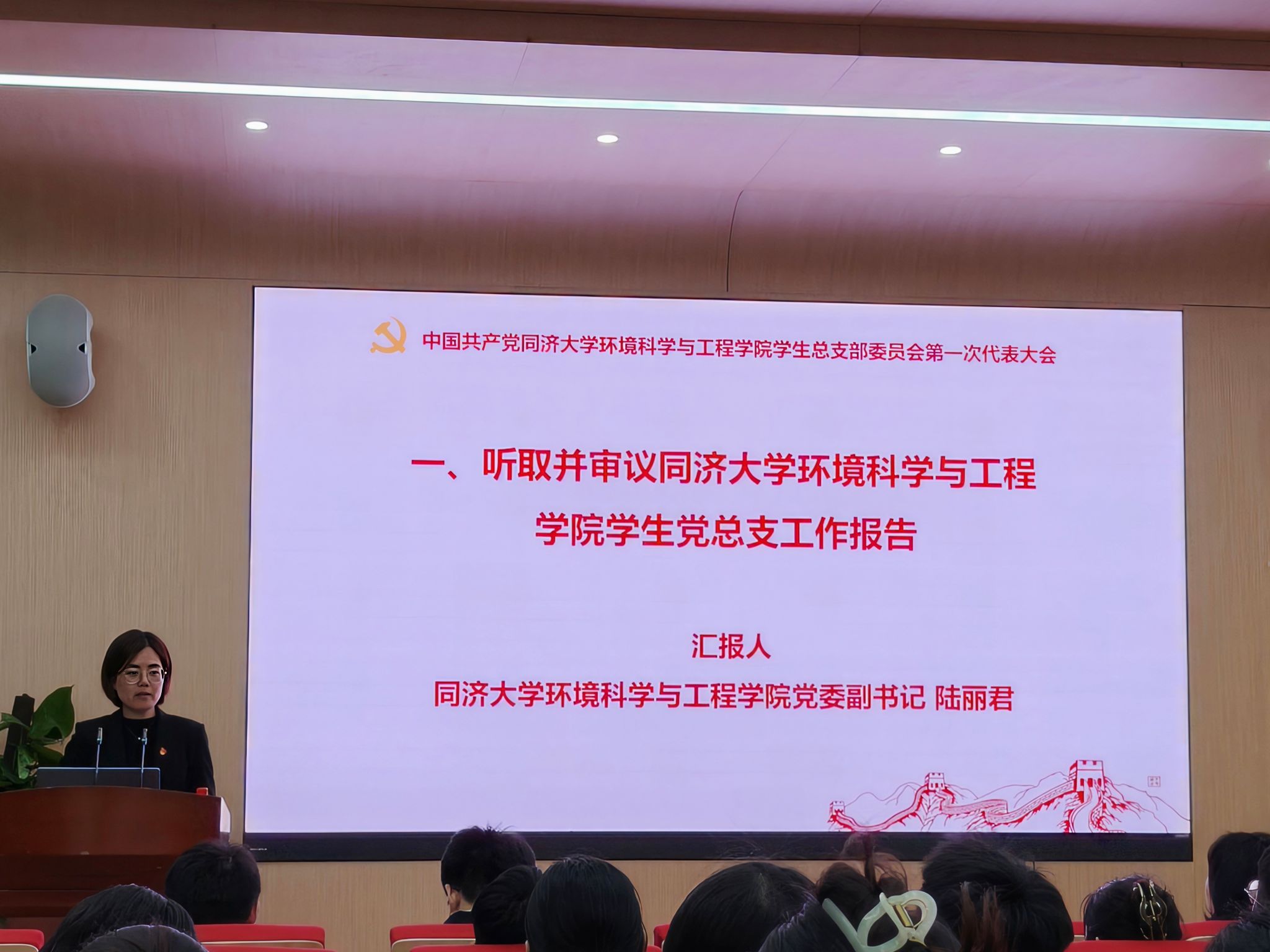 为进一步推进和提升同济大学环境科学与工程学院学生党建工作,4月7日,中国共产党同济大学环境科学与工程学院学生总支部委员会第一次代表大会在四平校区明净楼121报告厅隆重召开。大会听取并审议了同济大学环境科学与工程学院学生党总支工作报告,选举第一届中国共产党同济大学环境科学与工程学院学生总支部委员会委员。学院党委副书记陆丽君以及90余名代表现场参会。会议由黄圣洁同志主持。
