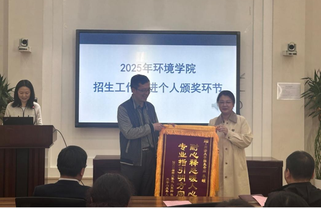 本次会议同时表彰了5位2024-2025年度院级招生工作先进个人,邓子龙老师获颁“凝心聚力奖”、廖振良老师获颁“善谋善为奖”、陈家斌老师获颁“担当有为奖”、黄圣洁老师获颁“披星戴月奖”、朱頔老师获颁“驰援有力奖”。