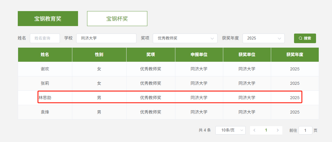 近日,宝钢教育基金会公布2025年度宝钢教育奖获奖名单。我院林思劼教授获得“宝钢优秀教师奖”。