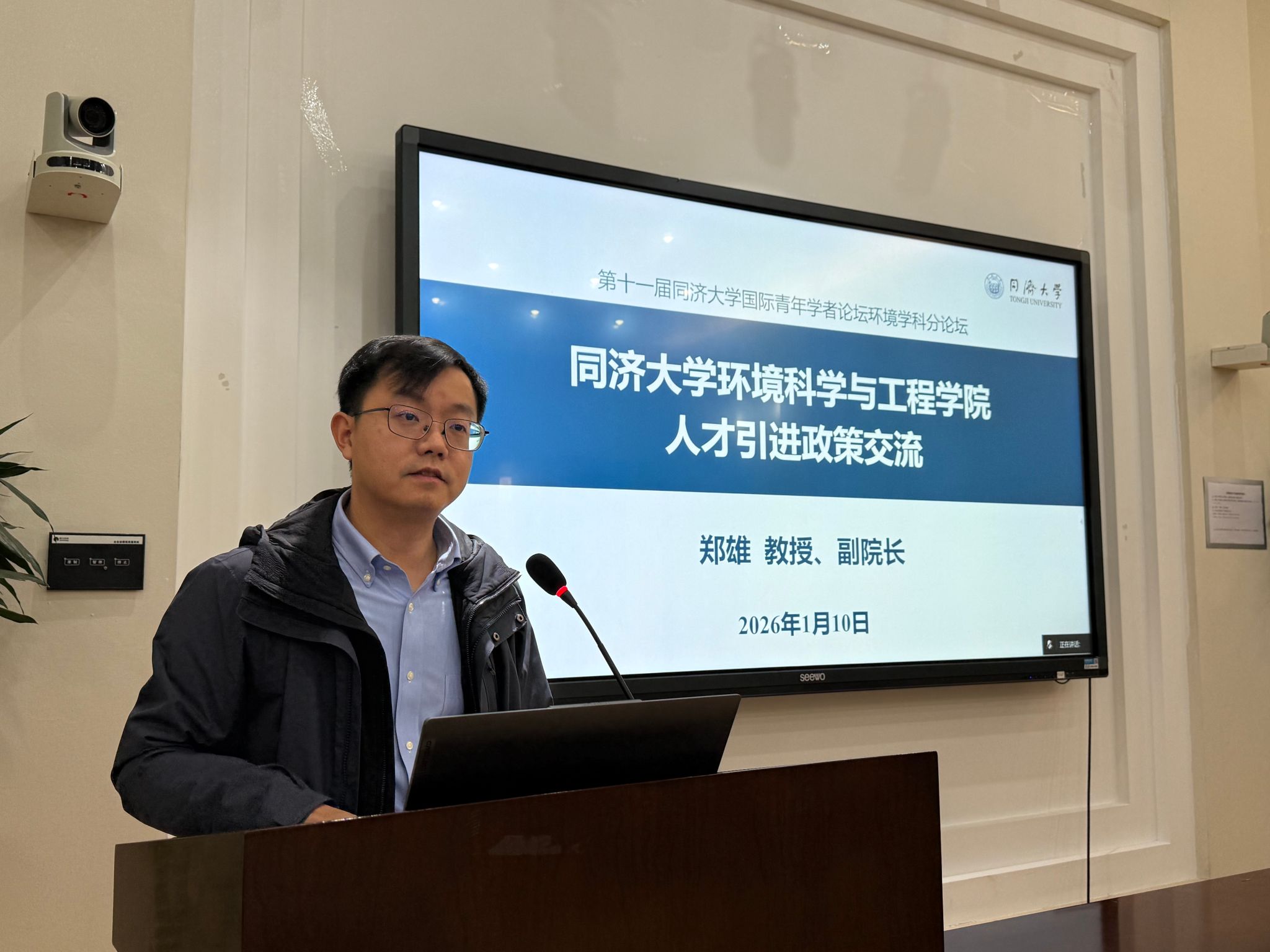 2026年1月10日,同济大学第十一届国际青年学者论坛——环境学科分论坛在学院明净楼419会议室成功举办。本次论坛吸引了来自美国、加拿大、新加坡、中国香港以及国内知名高校和科研院所的40余位专家学者、青年才俊及师生代表共同参与。论坛由学院党委副书记周上玖主持。