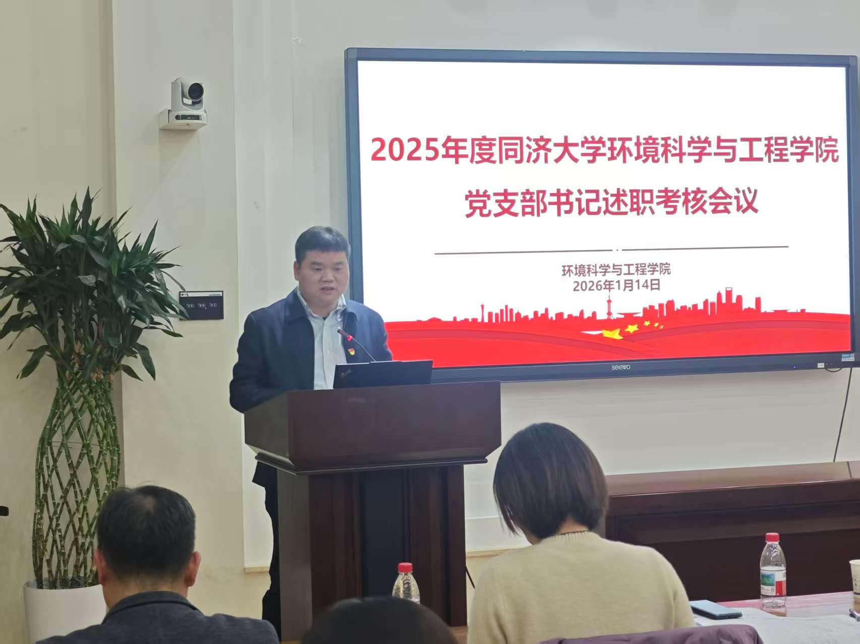 1月14日下午,我院2025年度党支部书记抓基层党建述职评议考核会在明净楼419报告厅顺利举行。组织部副部长田苏宏,学院党委书记徐斌,党委副书记、院长王志伟,党委副书记陆丽君、周上玖,党委委员尹海龙,以及全体师生党支部书记参加会议。会议由徐斌书记主持。