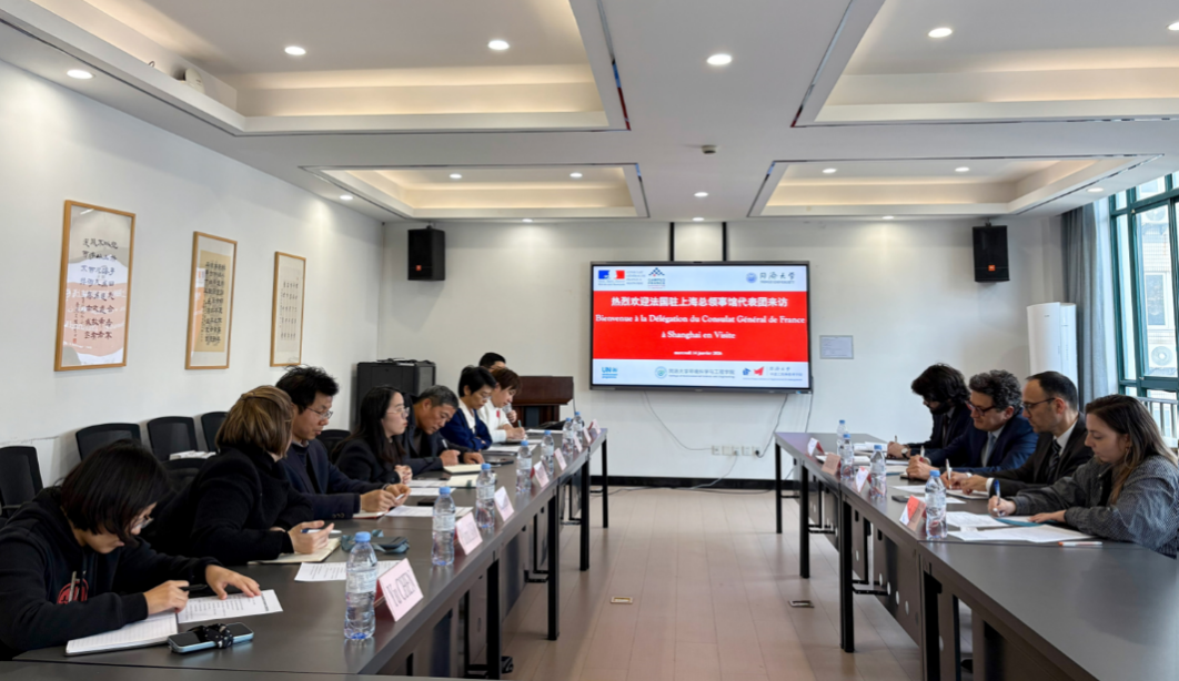 1月14日,法国驻上海总领事馆文化教育合作处教育领事戴杰明(Benjamin Demière)、科技领事马迪奇(Rachid Malti)一行来访我院,围绕深化中法在环境领域的合作开展交流。我院院长王志伟、副院长孙婧、李光明教授、吕凡教授、朱昊辰副教授以及学校外事办公室、中法工程和管理学院、联合国环境规划署—同济大学环境与可持续发展学院等单位代表共同出席相关活动。