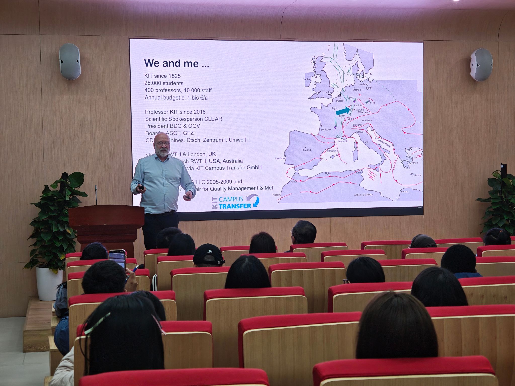 研讨会结束后,Christoph Hilgers教授在明净楼121会议室作题为《气候、原材料供应与能源转型——挑战与地质学的作用》的特邀学术报告,并与现场师生围绕相关学术问题展开互动交流。