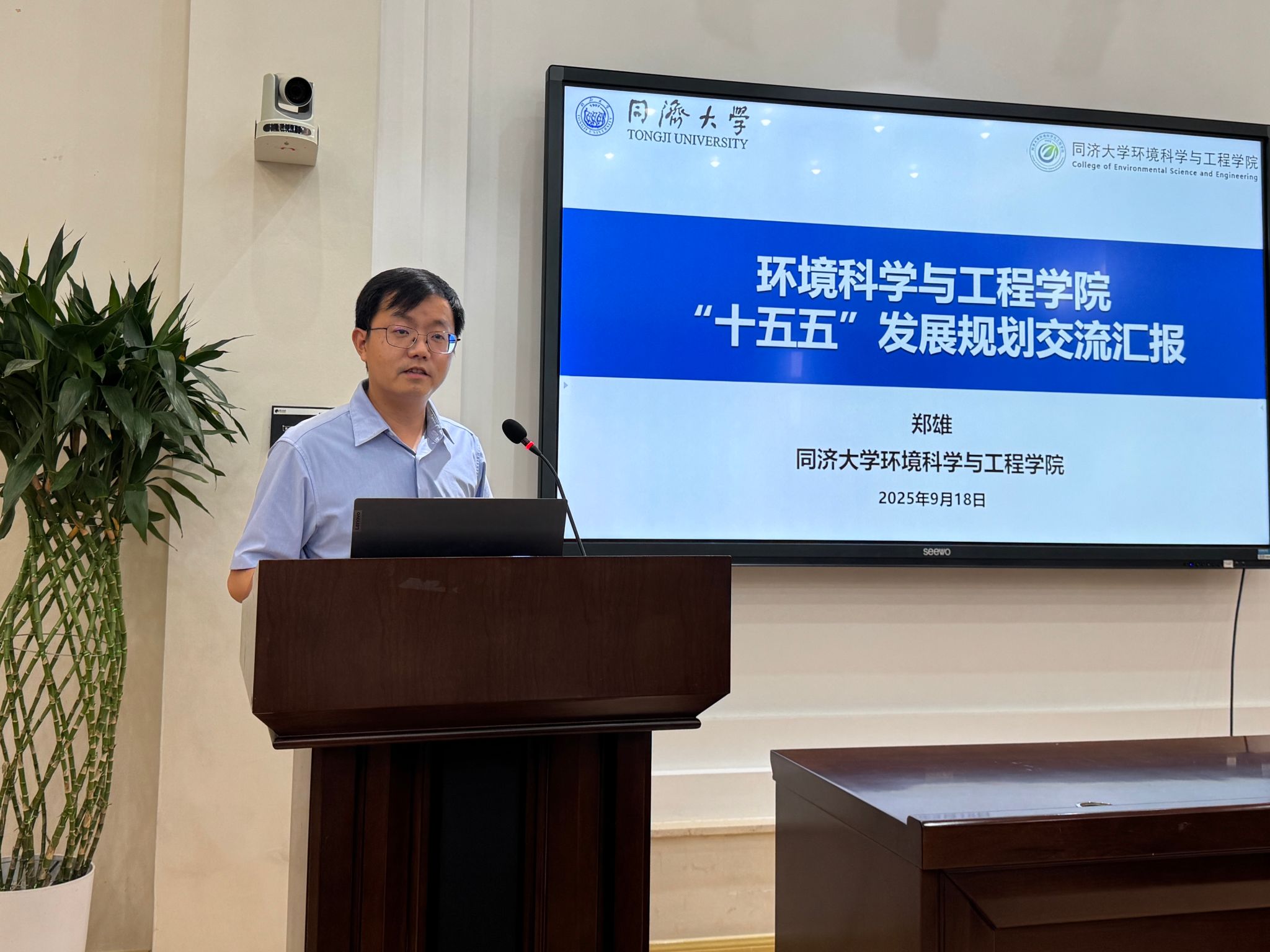副院长郑雄系统回顾了学院在“十四五”期间六大建设任务的执行情况与阶段性成果,并详细阐述了“十五五”规划的编制思路与核心框架。他指出,面对环境学科发展的新形势与学校寄予的新期待,学院必须在“1+N”的总体目标指引下,以更高的标准、更实的举措制定发展任务,通过一系列可落地、见实效的改革,坚定不移地向世界一流环境学科的目标迈进。