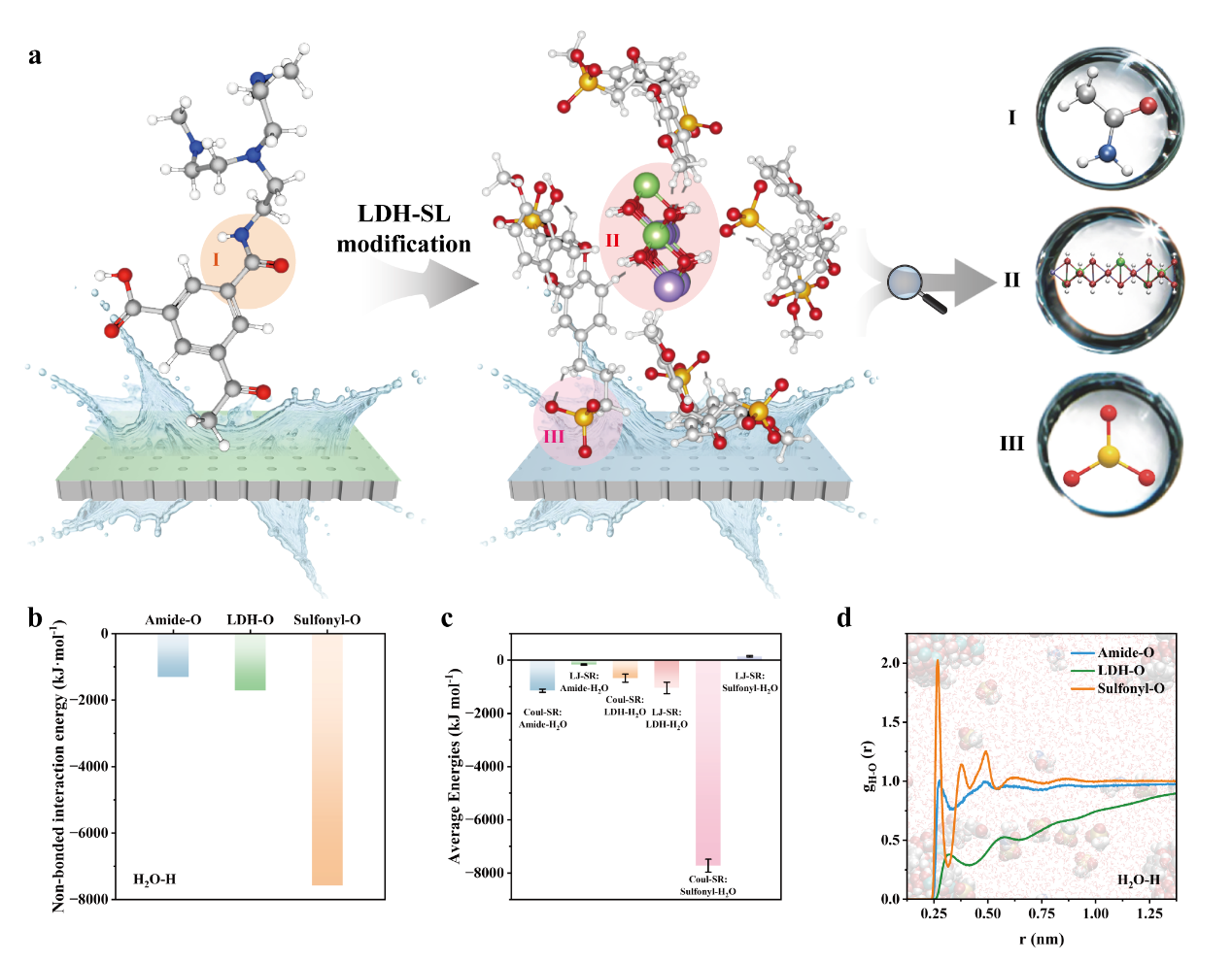 图2.LDH-SL纳米填料在水传输中的机制研究