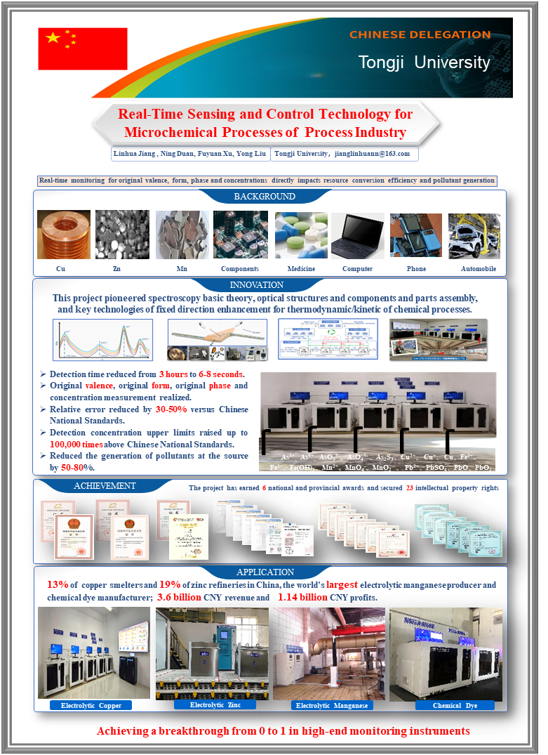 在近日于瑞士日内瓦落幕的第51届日内瓦国际发明展上,同济大学环境学院段宁院士团队降林华教授牵头研发的成果“流程工业微观化学过程实时感知操控技术”斩获展会最高级别奖项“评审团特别嘉许金奖(Gold Medal with the Congratulations of the Jury)”。该奖项是日内瓦国际发明展从金奖中遴选出的最高荣誉,需经评审团全票通过,代表着国际对该技术创新性、产业化价值的高度认可。