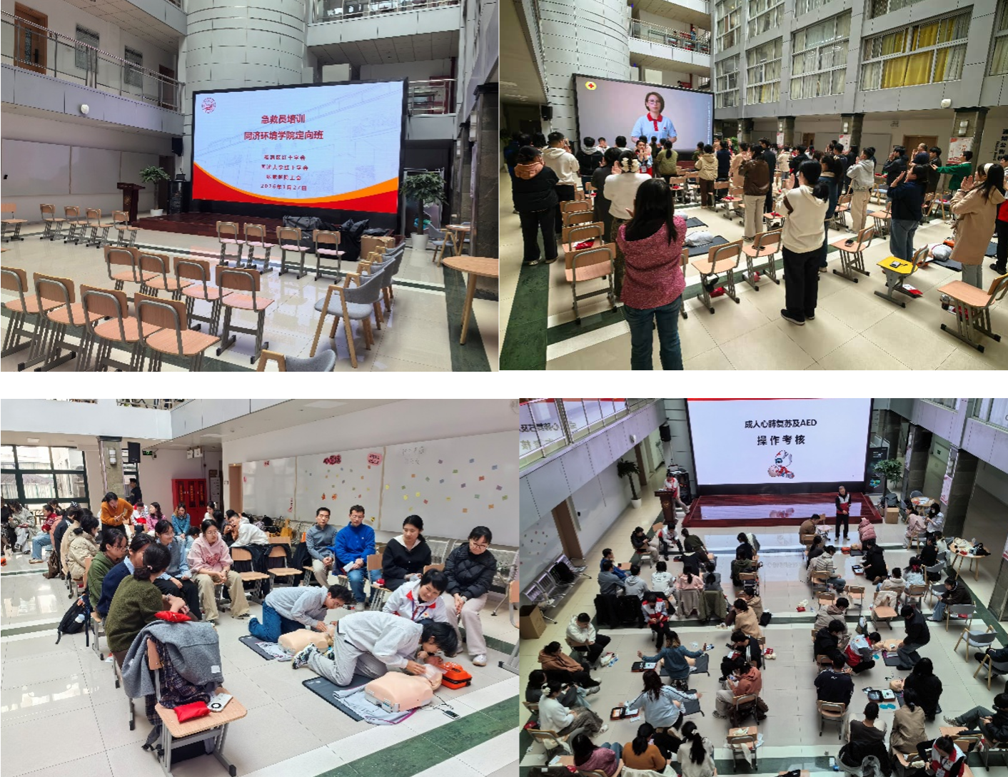 3月27日下午,同济大学环境学院工会联合学校红十字会,成功举办应急急救专项培训。本次培训特别邀请杨浦区资深急救讲师现场授课,学院教职工、各年级学生共计65余人参与其中,通过理论精讲、实操演练、操作考核穿插协同的教学模式,让每一位参训者吃透急救知识、熟练掌握实操技能,为师生日常学习、科研实践筑牢安全屏障。